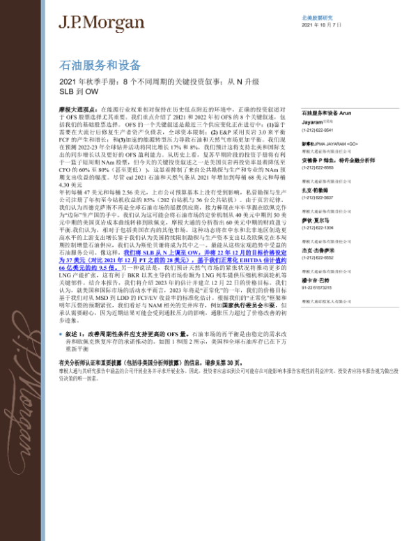 【J.P. Morgan】【2021】美股油服与设备行业不同周期的8个关键投资叙事-37页 行业研究