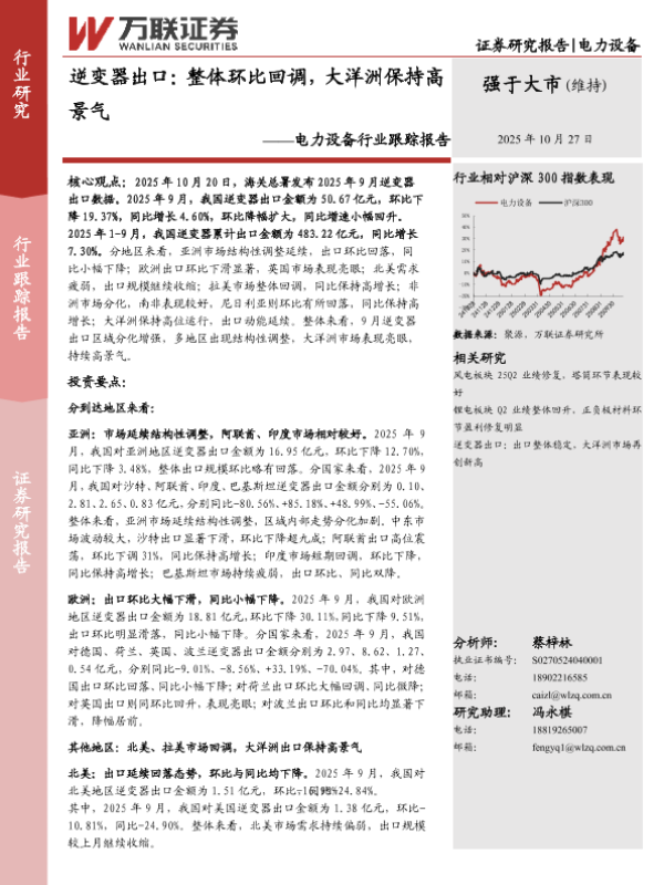 【万联证券】【202510】逆变器出口:整体环比回调,大洋洲保持高景气-10页 证券期货研究报告