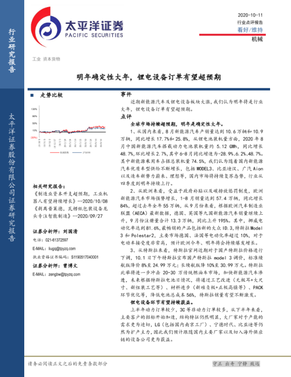 【太平洋证券】【20201011】20201011-太平洋-机械行业点评报告:明年确定性大年,锂电设备订单有望超预期-5页 行业研究