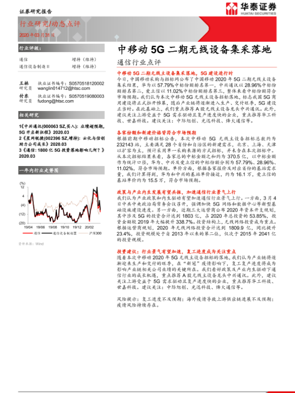 【华泰证券】【20200331】通信行业点评:中移动5G二期无线设备集采落地-4页 行业研究