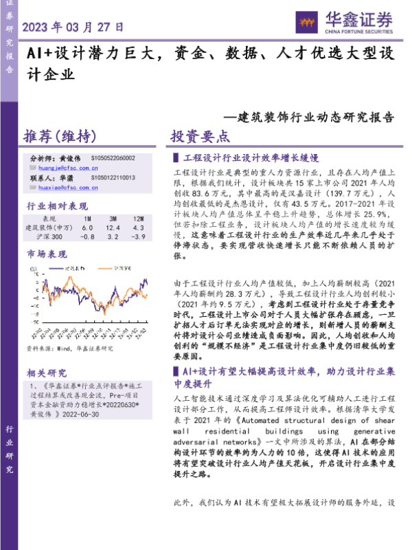 【华鑫证券】【20230227】AI+设计潜力巨大,资金、数据、人才优选大型设计企业-4页 行业研究