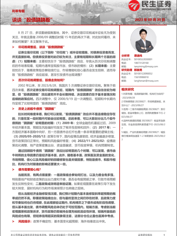 【民生证券】【20230830】利率专题:谈谈“股债跷跷板”-17页 行业研究