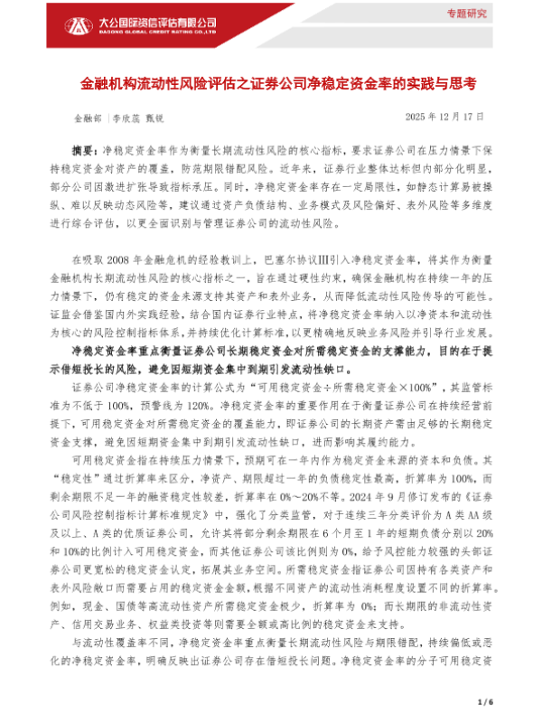 【大公国际】【202512】金融机构流动性风险评估之证券公司净稳定资金率的实践与思考-6页 证券期货研究报告