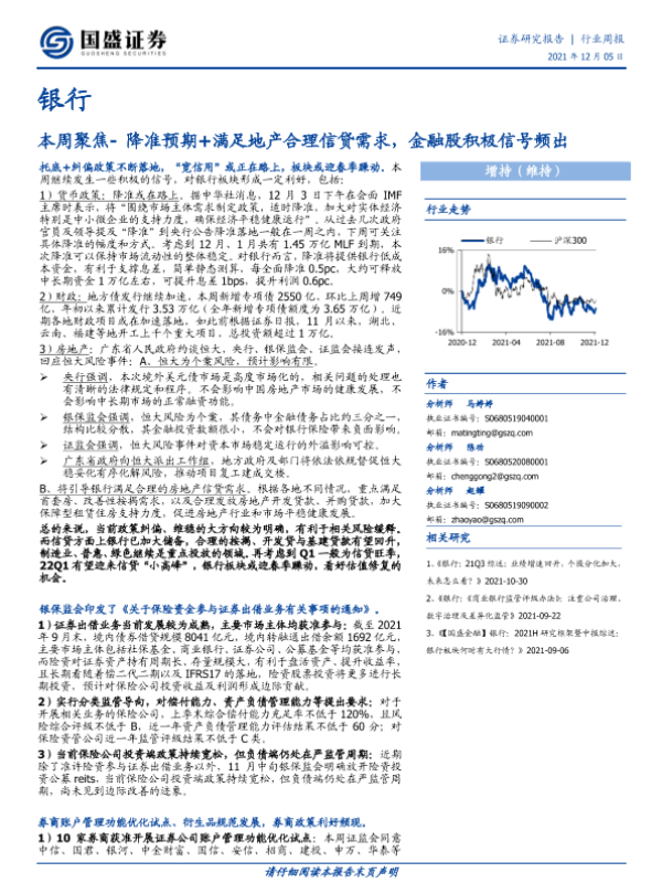 【国盛证券】【20211205】银行业周报:本周聚焦-降准预期+满足地产合理信贷需求,金融股积极信号频出-12页 行业研究