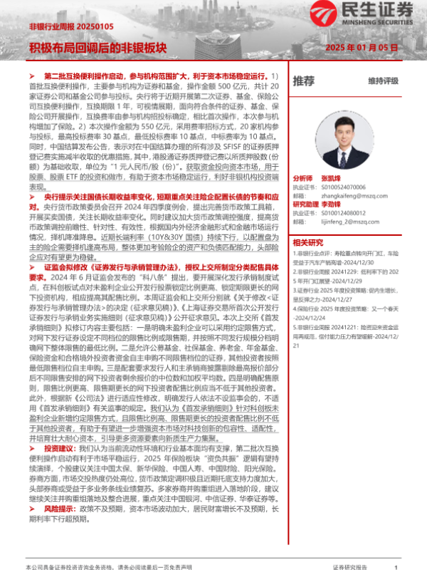 【民生证券】【20250105】非银行业周报:积极布局回调后的非银板块-13页 行业研究