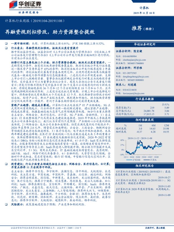 【华创证券】【20191110】20191110-华创证券-计算机行业周报:再融资规则拟修改,助力资源整合提效-23页 行业研究
