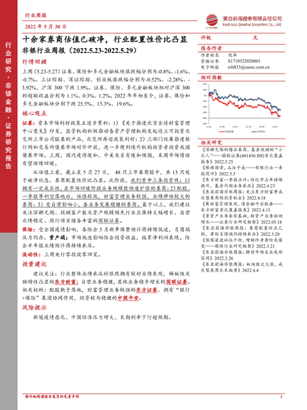 【东亚前海证券】【20220530】十余家券商估值已破净,行业配置性价比凸显-9页 行业研究