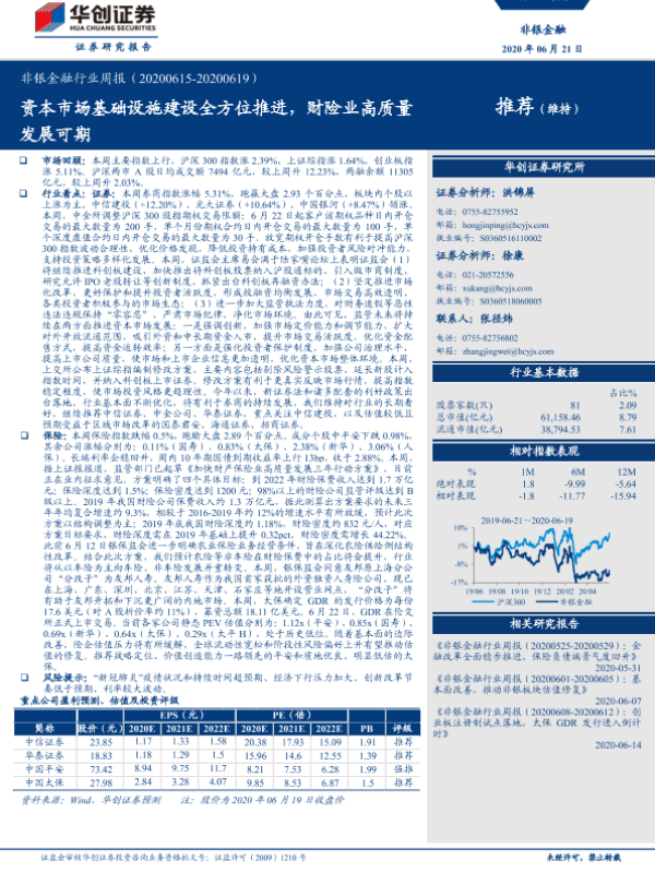 【华创证券】【20200621】非银金融行业周报:资本市场基础设施建设全方位推进,财险业高质量发展可期-15页 行业研究