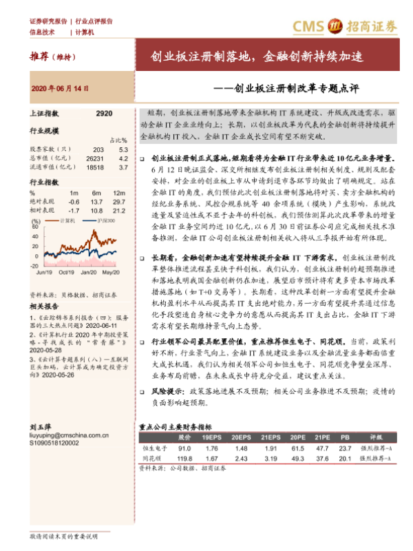 【海通证券】【20200614】20200614-招商证券-计算机行业点评报告:创业板注册制改革专题点评-创业板注册制落地,金融创新持续加速-8页 行业研究