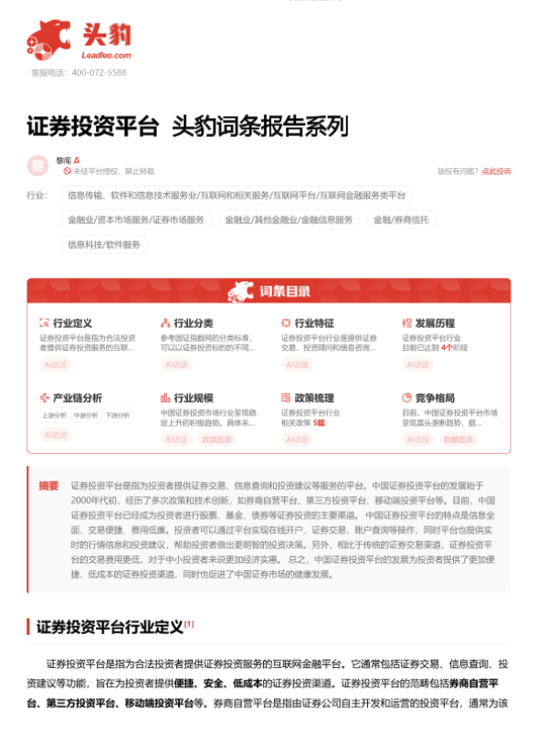 【头豹研究院】【20230814】证券投资平台 头豹词条报告系列-22页 行业研究