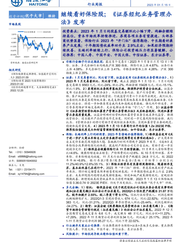 【海通证券】【20230115】综合金融服务行业周报:继续看好保险股;《证券经纪业务管理办法》发布-13页 行业研究