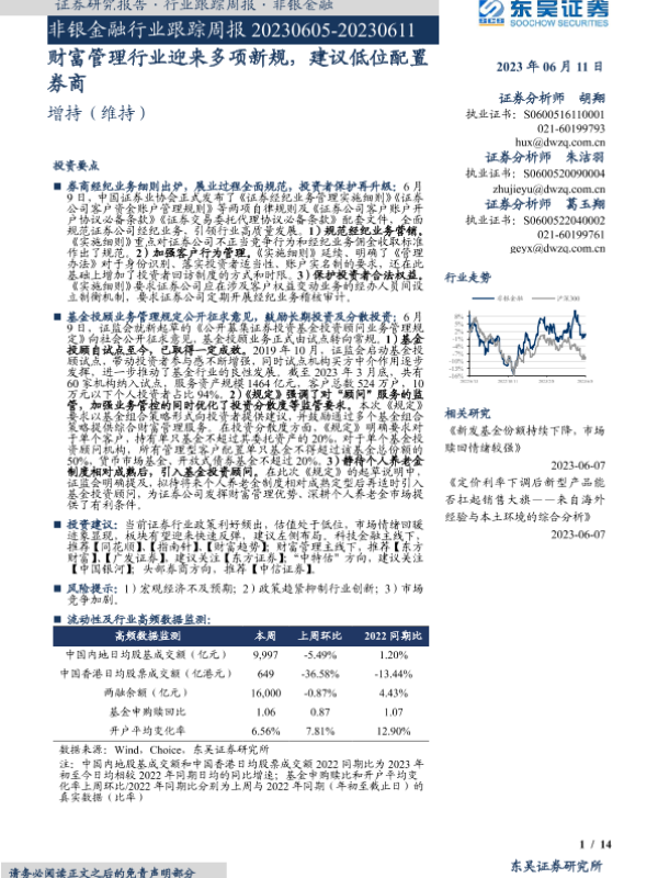 【东吴证券】【20230611】非银金融行业跟踪周报:财富管理行业迎来多项新规,建议低位配置券商-14页 行业研究