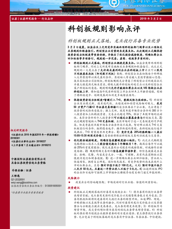 【中银证券】【20190302】科创板规则影响点评:科创板规则正式落地,龙头投行具备专业优势-7页 行业研究