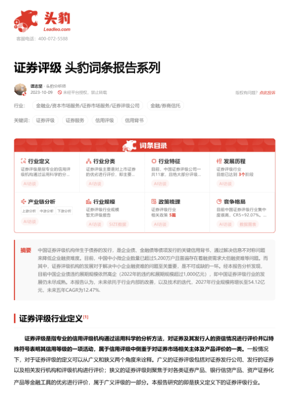 【头豹研究院】【20231009】证券评级 头豹词条报告系列-13页 行业研究