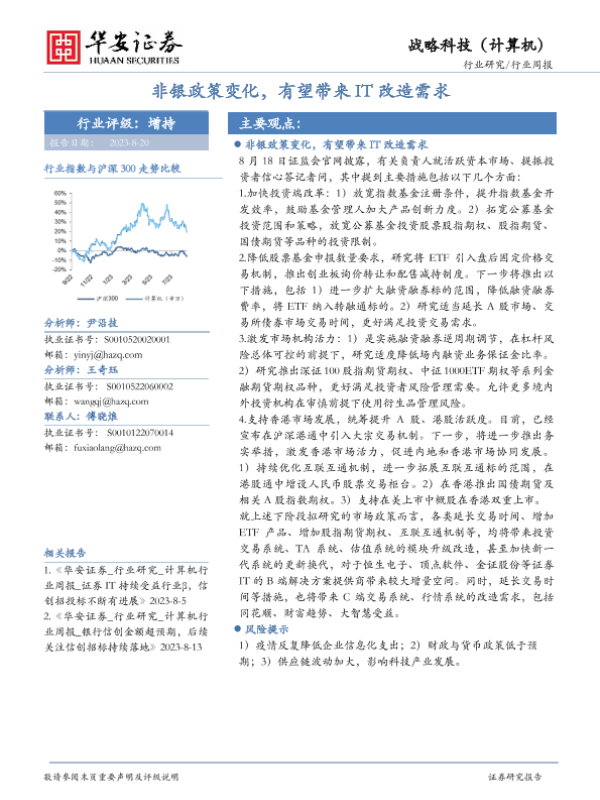 【华安证券】【20230820】20230820-华安证券-战略科技(计算机)行业周报:非银政策变化,有望带来IT改造需求-16页 行业研究