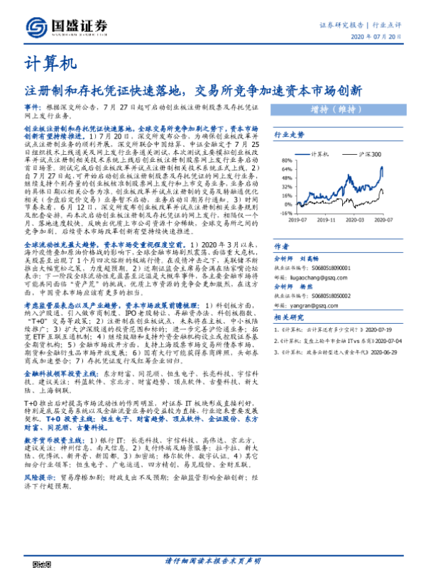 【国盛证券】【20200720】计算机:注册制和存托凭证快速落地,交易所竞争加速资本市场创新-2页 行业研究