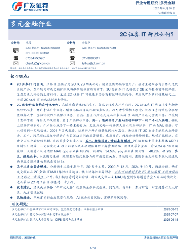 【广发证券】【202508】多元金融行业:2C证券IT弹性如何?-13页 证券期货研究报告
