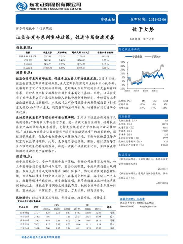 【东北证券】【20210206】非银金融行业周报:证监会发布系列重磅政策,促进市场健康发展-21页 行业研究