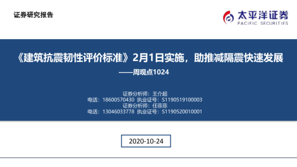 【太平洋证券】【20201024】建筑行业周观点:《建筑抗震韧性评价标准》2月1日实施,助推减隔震快速发展-44页 行业研究