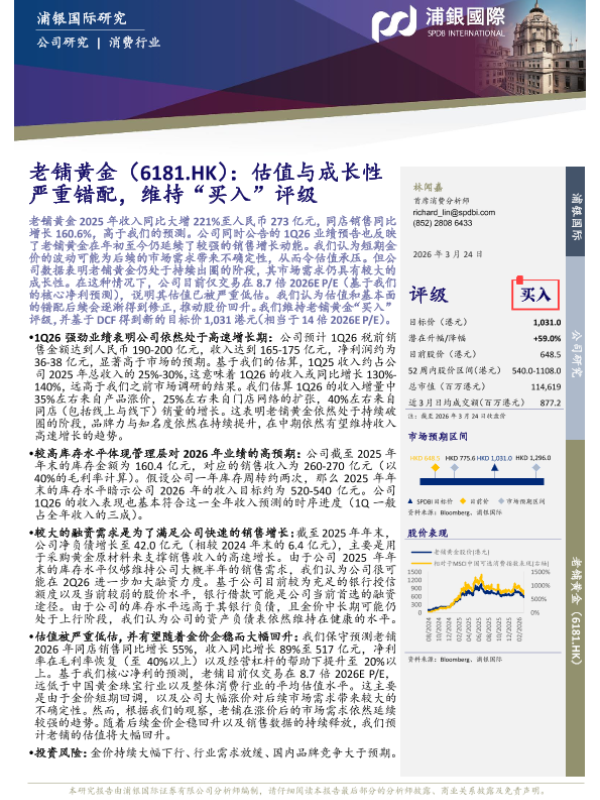 【浦银国际】【202603】老铺黄金(6181.HK):估值与成长性严重错配,维持“买入”评级-7页 证券期货研究报告
