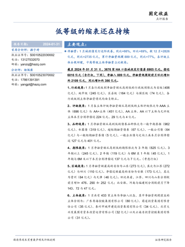 【华安证券】【20240131】固定收益点评报告:低等级的缩表还在持续-10页 行业研究