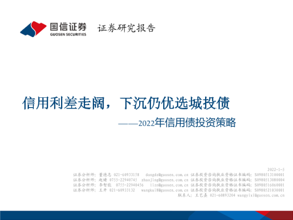 【国信证券】【20220105】2022年信用债投资策略:信用利差走阔,下沉仍优选城投债-29页 行业研究