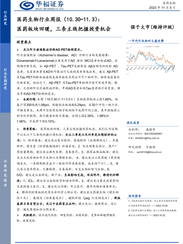 【华福证券】【20231105】医药生物行业周报:医药板块回暖,三条主线把握投资机会-14页 行业研究