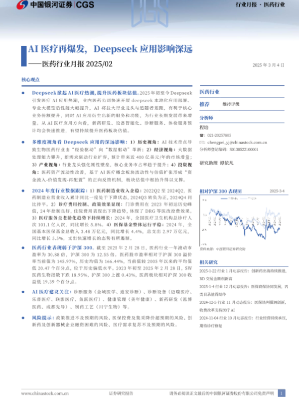 【银河证券】【20250304】AI医疗再爆发,Deepseek应用影响深远-19页 行业研究