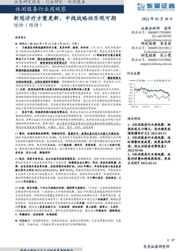 【东吴证券】【20220320】休闲服务行业周观察:新冠诊疗方案更新,中线战略性乐观可期-17页 行业研究