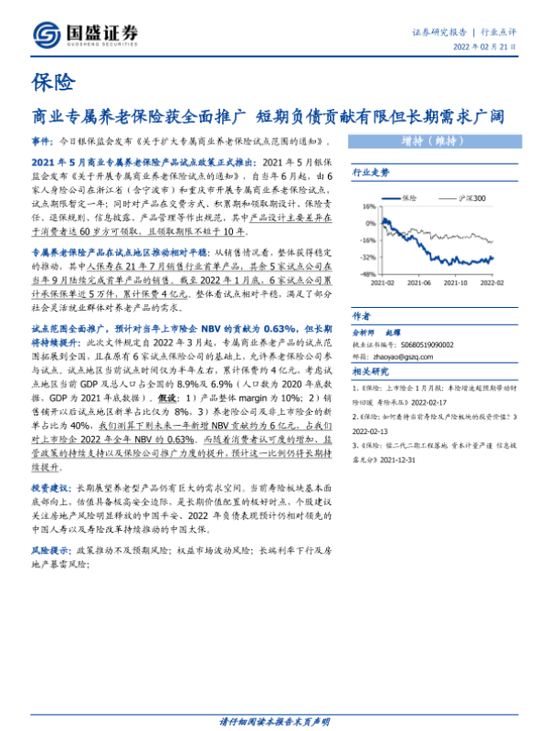 【国盛证券】【20220221】商业专属养老保险获全面推广 短期负债贡献有限但长期需求广阔-2页 行业研究