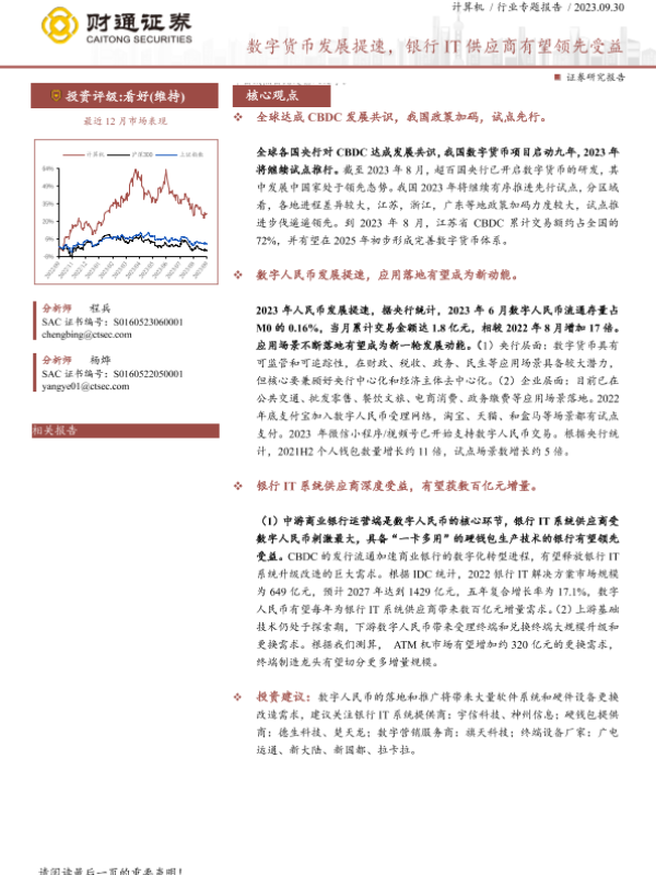 【财通证券】【20230930】计算机行业专题报告:数字货币发展提速,银行IT供应商有望领先受益-23页 行业研究