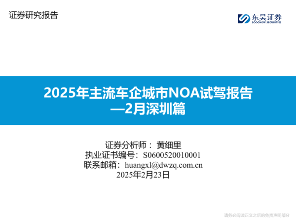 【东吴证券】【20250223】2025年主流车企城市NOA试驾报告—2月深圳篇-36页 行业研究