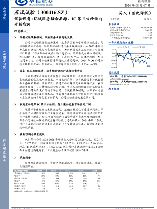 【华福证券】【20240807】苏试试验(300416)试验设备+环试服务融合共振,IC第三方检测打开新空间-25页 行业研究