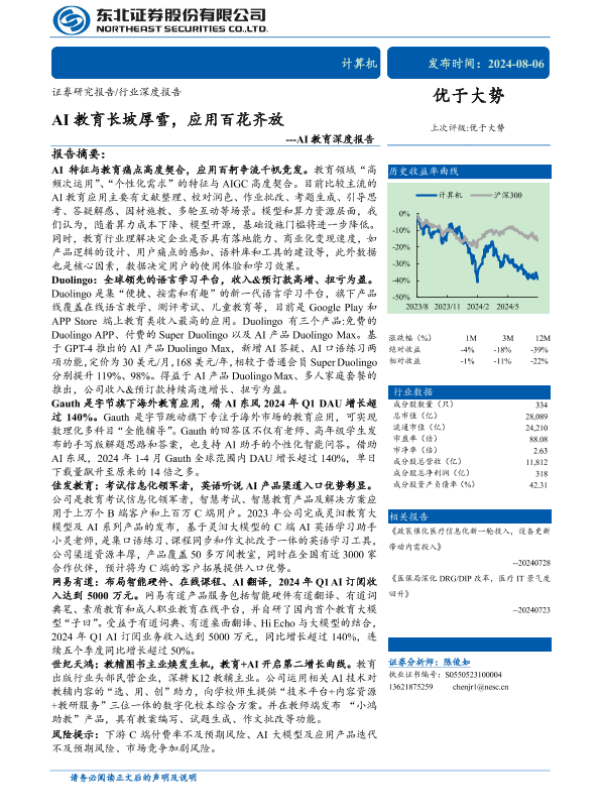 【东北证券】【20240806】AI教育长坡厚雪,应用百花齐放-28页 行业研究