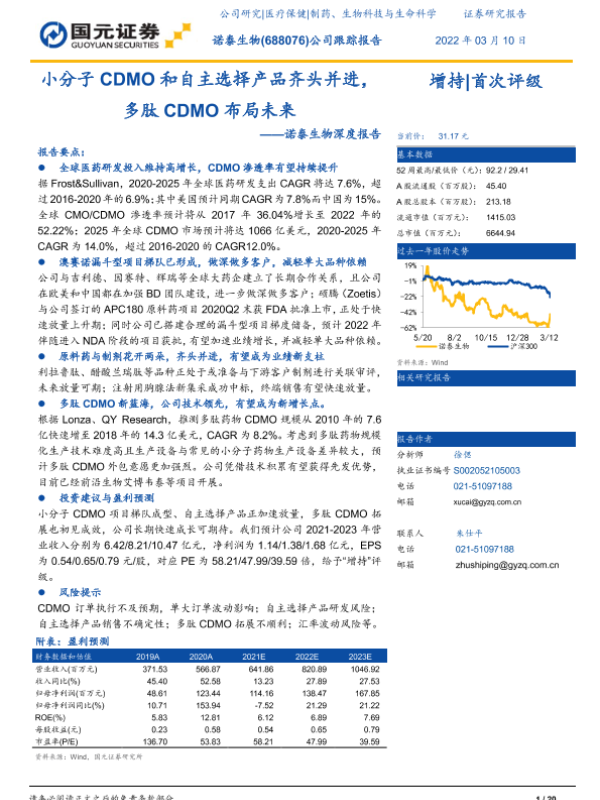 【国元证券】【20220310】小分子CDMO和自主选择产品齐头并进,多肽CDMO布局未来-20页 公司研究