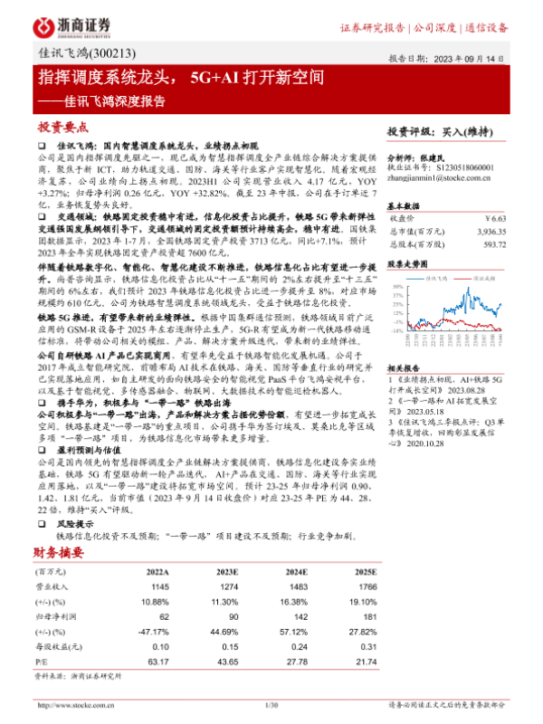【浙商证券】【20230914】佳讯飞鸿深度报告:指挥调度系统龙头,5G+AI打开新空间-30页 行业研究