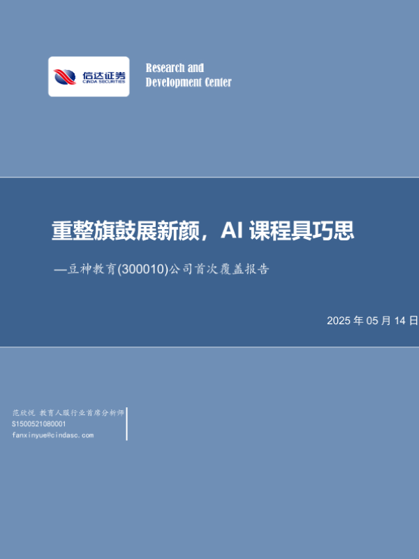 【信达证券】【20250514】豆神教育(300010)公司首次覆盖报告:重整旗鼓展新颜,AI课程具巧思-17页 公司研究