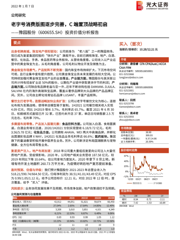 【光大证券】【20220107】老字号消费版图逐步完善,C端置顶战略初启——豫园股份(600655.SH)投资价值分析报告-48页 行业研究