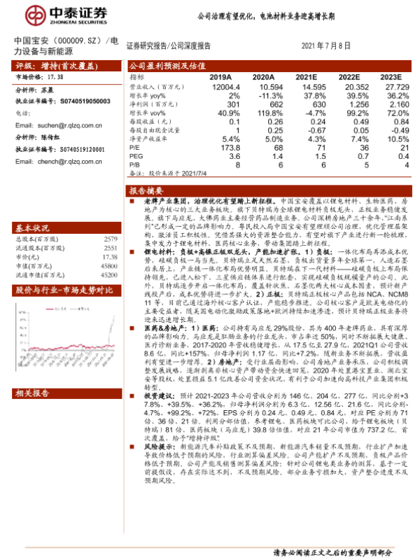 【中泰证券】【20210708】20210708-中泰证券-中国宝安-000009.SZ-公司治理有望优化,电池材料业务迎高增长期-20页 行业研究