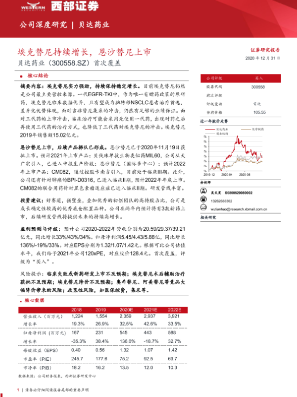 【西部证券】【20201231】贝达药业-300558.SZ-首次覆盖:埃克替尼持续增长,恩沙替尼上市-34页 行业研究