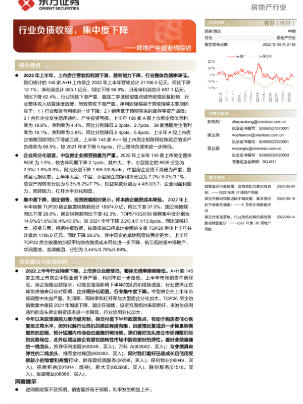 【东方证券】【20220921】房地产行业中报业绩综述:行业负债收缩,集中度下降-18页 行业研究
