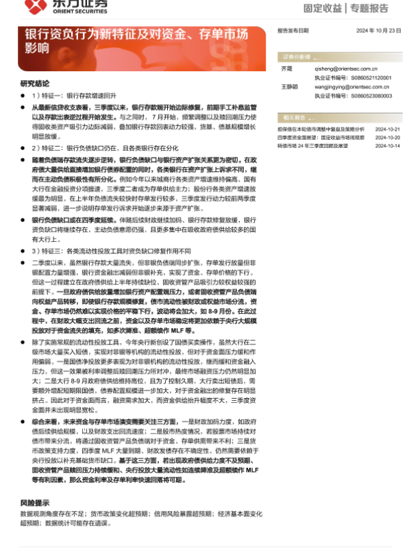 【东方证券】【20241023】固定收益专题报告:银行资负行为新特征及对资金、存单市场影响-14页 行业研究