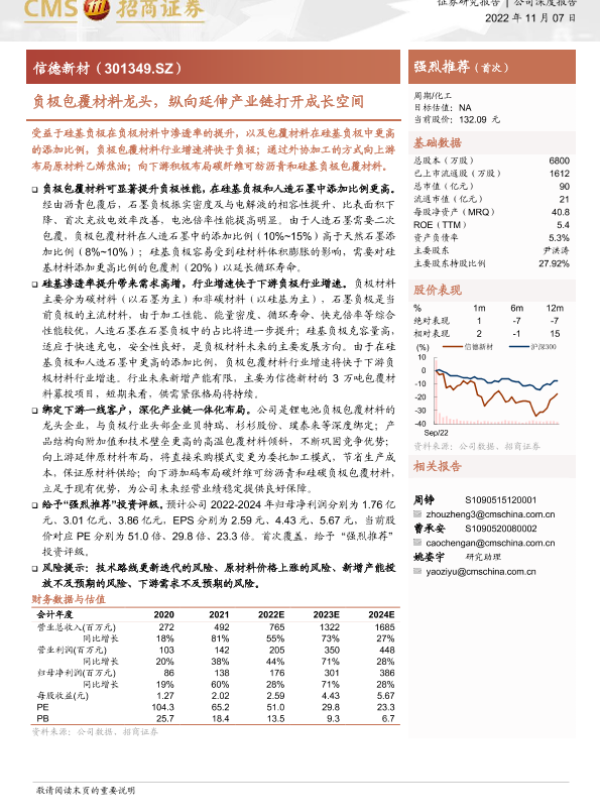 【海通证券】【20221107】信德新材-301349.SZ-负极包覆材料龙头,纵向延伸产业链打开成长空间-23页 证券期货研究报告