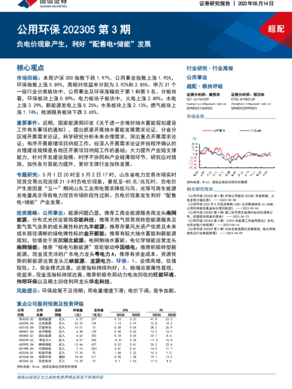 【国信证券】【20230514】公用环保202305第3期:负电价现象产生,利好“配售电+储能”发展-31页 行业研究