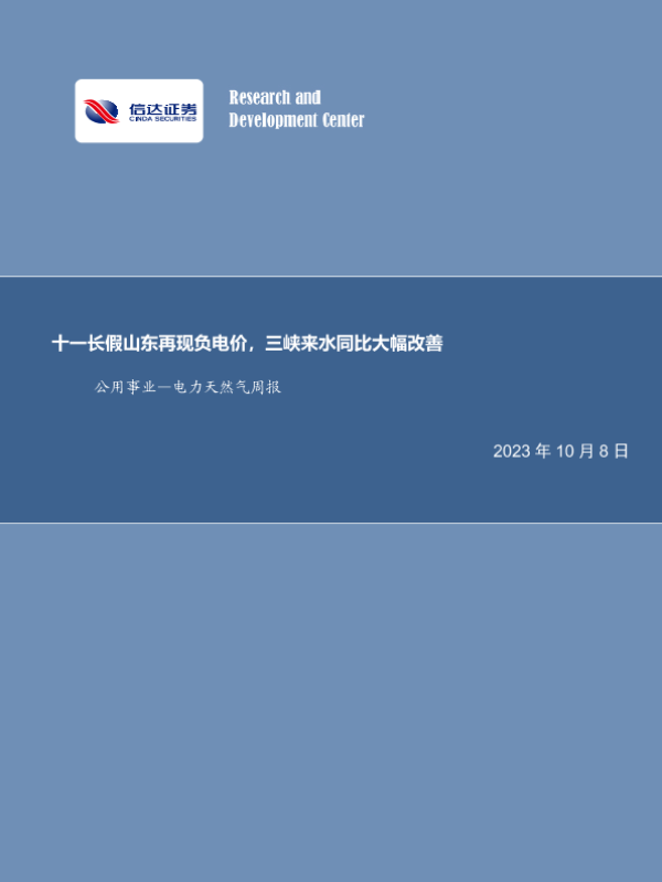 【信达证券】【20231008】公用事业—电力天然气周报:十一长假山东再现负电价,三峡来水同比大幅改善-20页 行业研究
