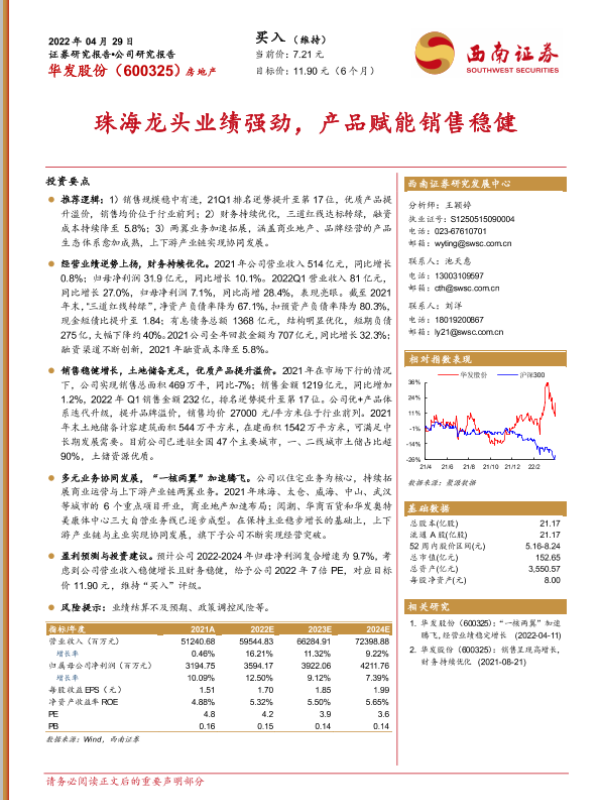 【西南证券】【20220429】珠海龙头业绩强劲,产品赋能销售稳健-22页 行业研究