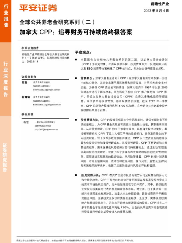 【平安证券】【20230804】加拿大CPP:追寻财务可持续的终极答案-37页 行业研究