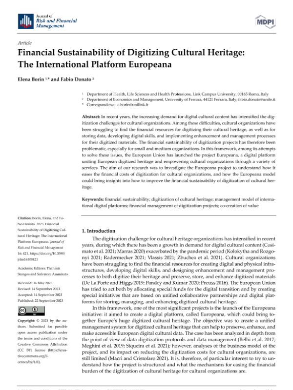 【Elena Borin and Fabio Donato】【2023】数字化文化遗产的财务可持续性:欧洲国际平台-17页 学术论文