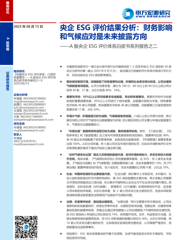 【申万宏源】【202508】央企ESG评价结果分析:财务影响和气候应对是未来披露方向-22页 白皮书
