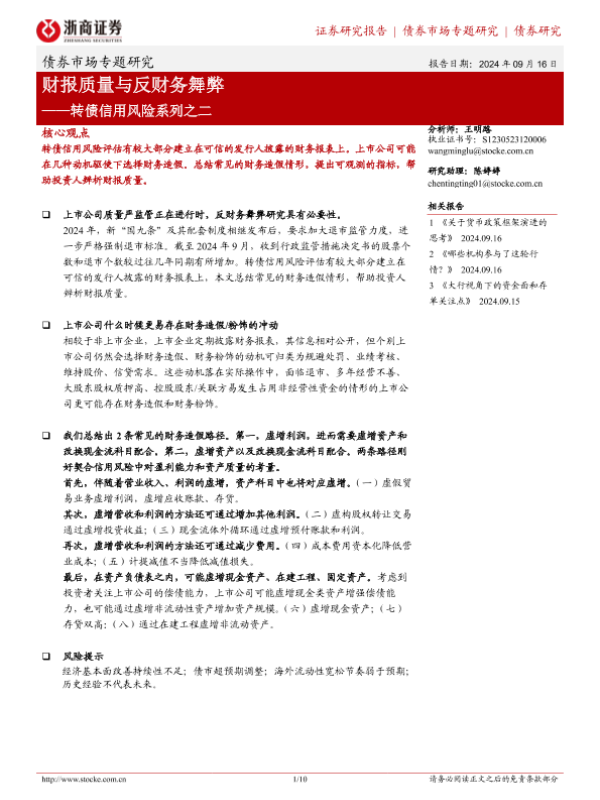 【浙商证券】【20240916】转债信用风险系列之二:财报质量与反财务舞弊-10页 行业研究